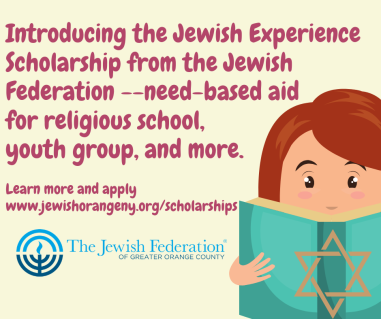 Need-based scholarships to Jewish families residing in Greater Orange County for Jewish educational programs and experiences including Religious School/Hebrew School at Federation-affiliated synagogues, youth group conventions including USY, NFTY, BBYO, Young Judea, and Hadassah, and other Jewish Experiences upon approval by the Scholarship Committee. Applications will be accepted on a rolling basis.