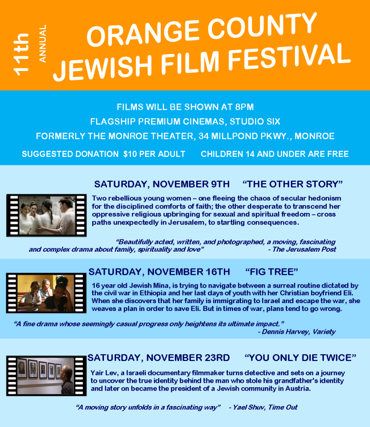 If you have been a sponsor of the Film Festival in previous years, we thank you. We invite you to continue or become a corporate or personal sponsor of this year's film festival. Reach thousands of Jewish Federation, synagogue members and film lovers by becoming a sponsor and be recognized in all our promotional e-mails, posters, on the program on the day of film screenings and on our website. Simply follow this link to complete your sponsorship information.