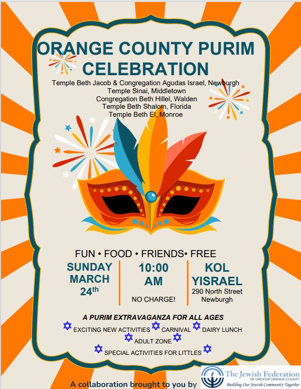 Come celebrate Purim with Jewish families from around the county!