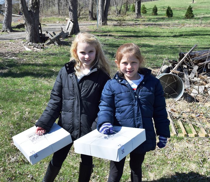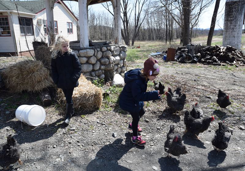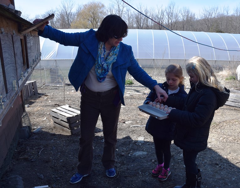 The Jewish Federation organized this tour of Yiddish Farm in New Hampton, NY on April 10, 2016. It was a breezy cool day, but those attending enjoyed hearing the history of the farm and tasting the shmura matzah. Thanks to Gail Conklin and her granddaughter, Emma, for these great photos. That's Emma and her sister, Olivia, helping to gather eggs. If you want to know more about the farm, visit their website here.