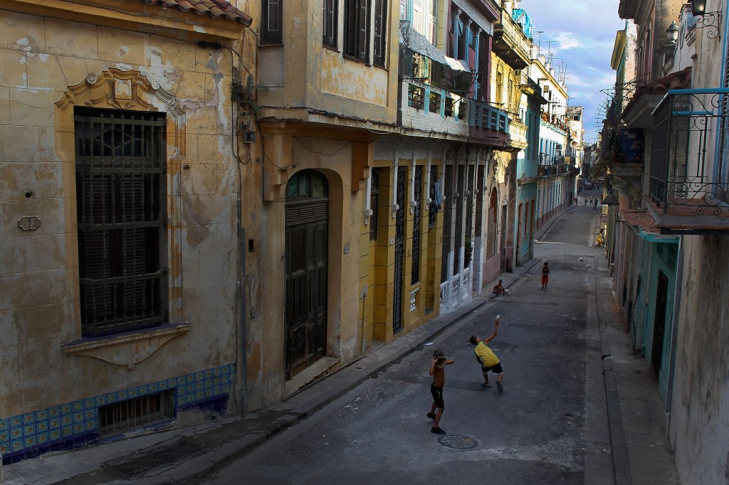 Children playing a baseball game in the streets of Havana. “For the baseball purists, those who love to go to Cuba, it’s a unique culture,” Kit Krieger says.
