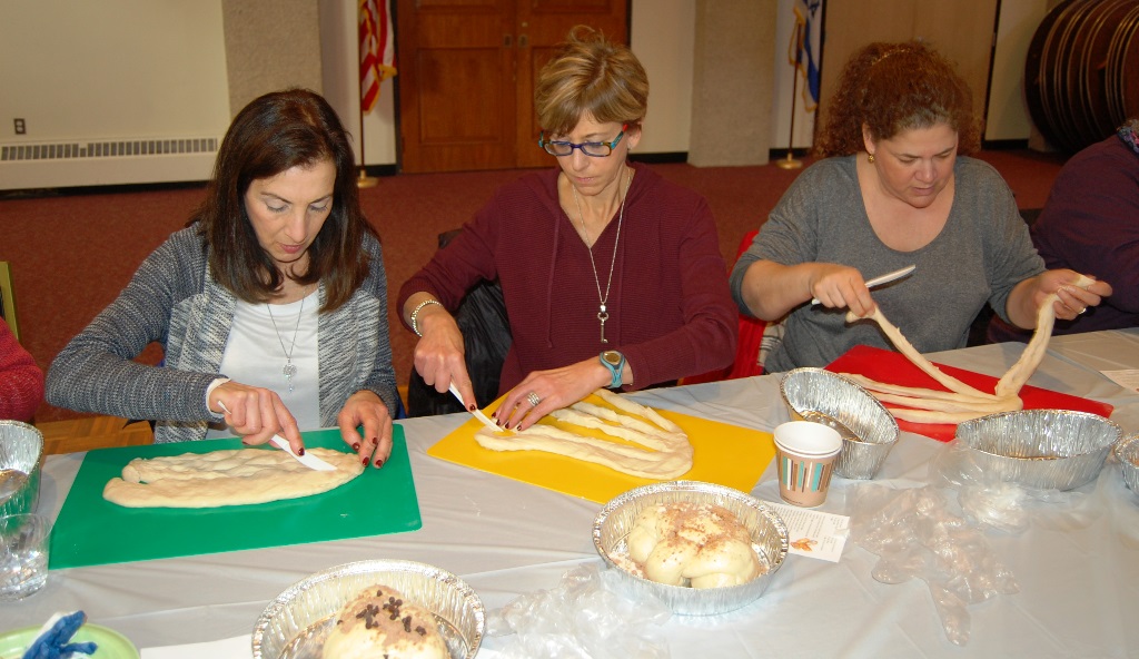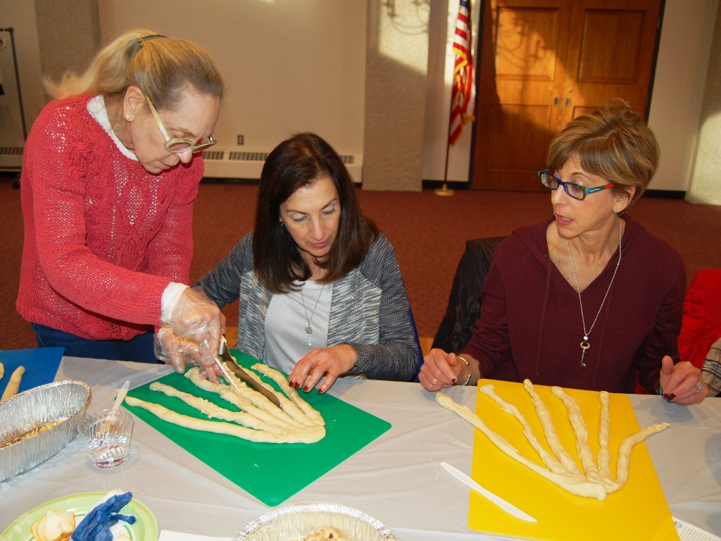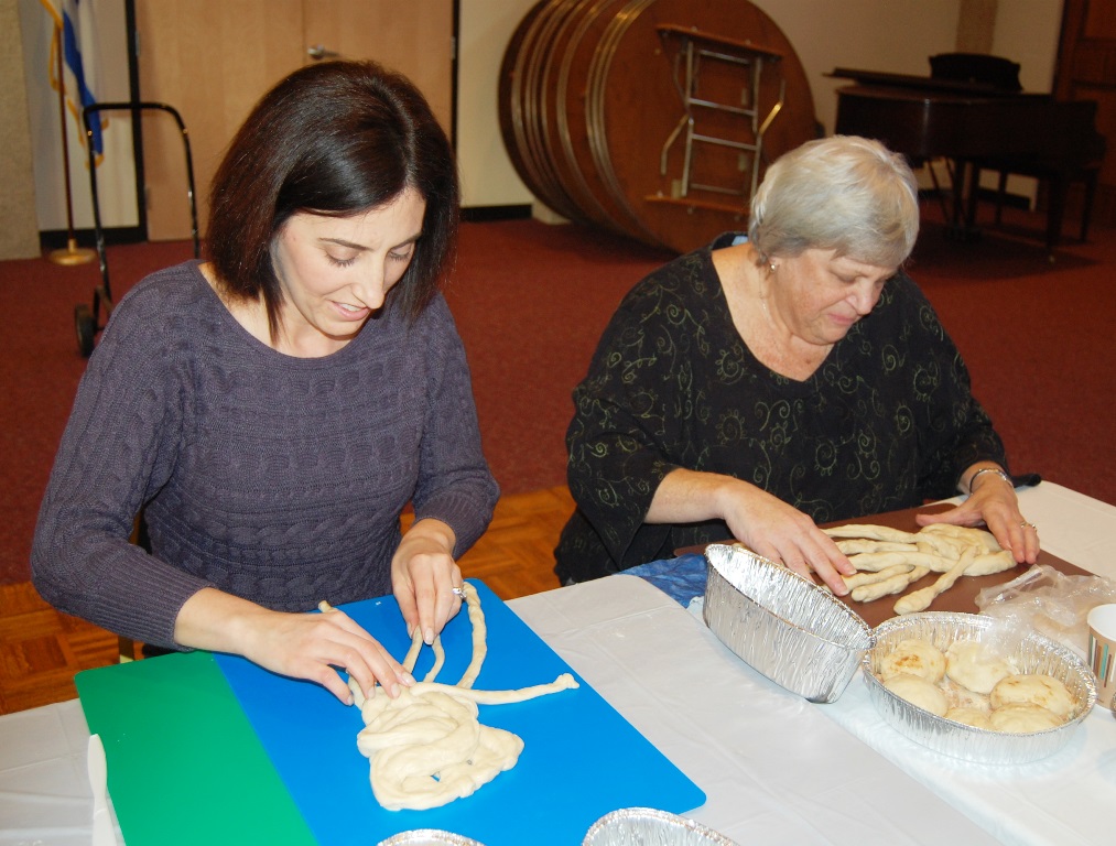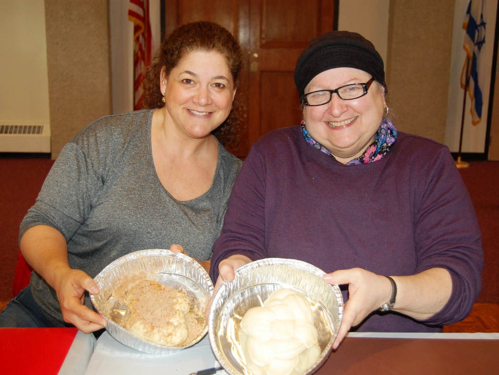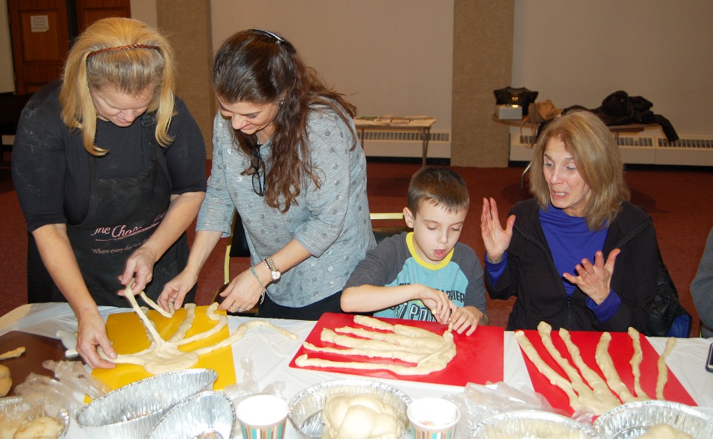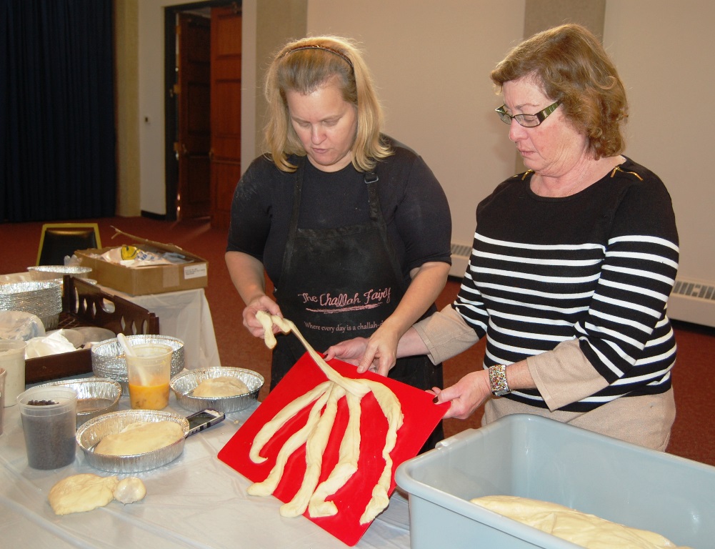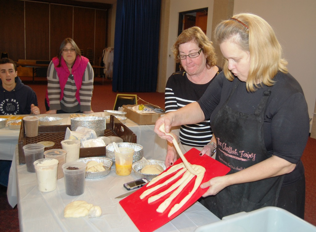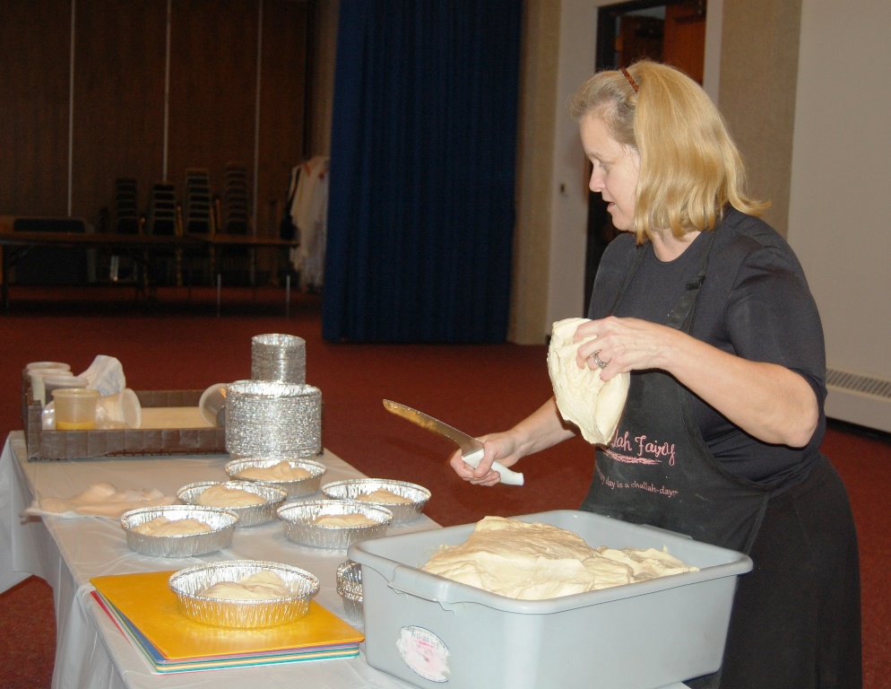 What a wonderful time was had by all who attended this workshop led by The Challah Fairy, Chanalee. We made a round challah and an oblong challah with and without toppings. The pictures below uploaded backwards, so start at the bottom for a chronological view of the afternoon. Thanks to Gail Conklin for these great shots! Click o a thumbnail for a larger view.