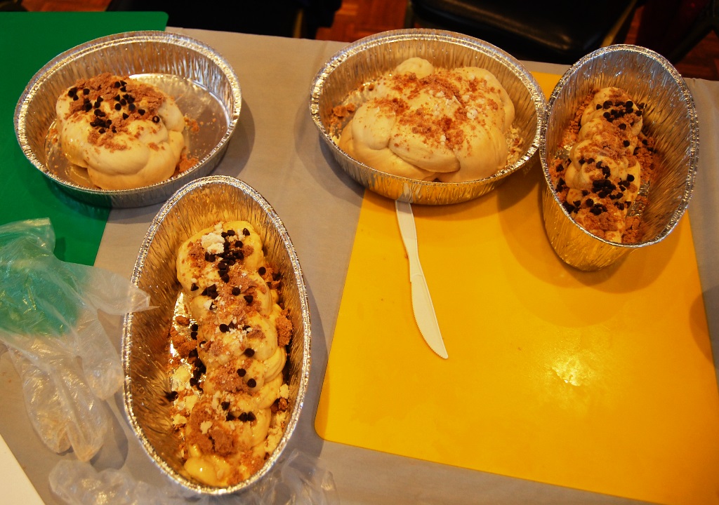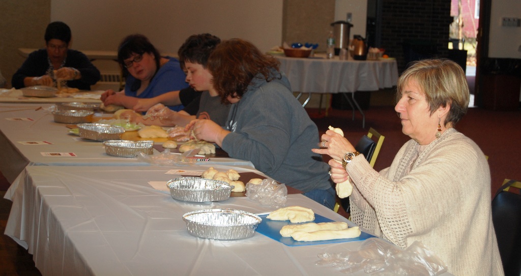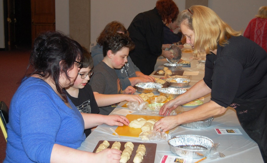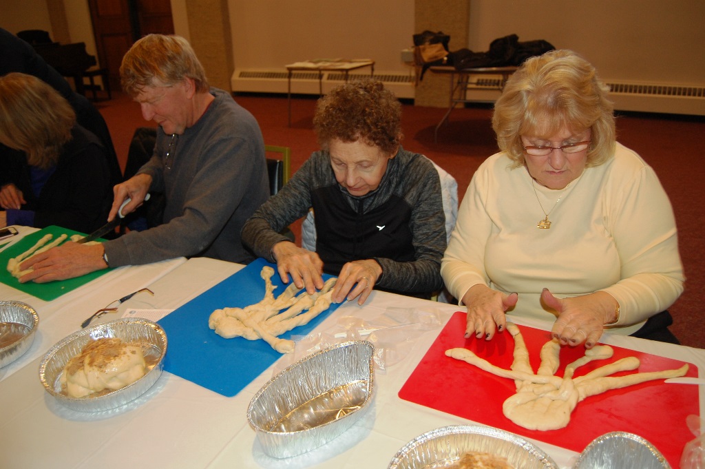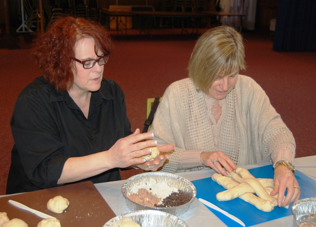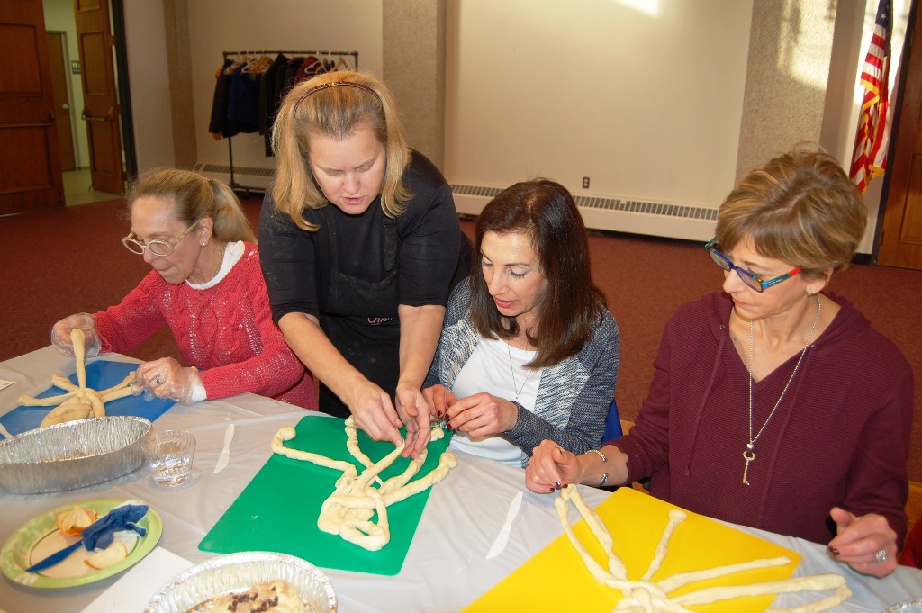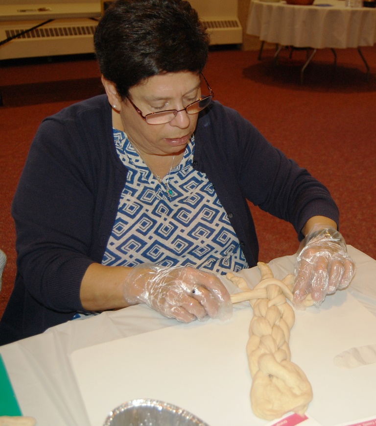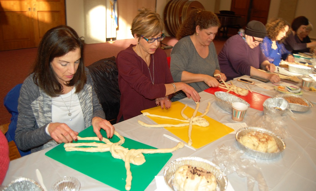 What a wonderful time was had by all who attended this workshop led by The Challah Fairy, Chanalee. We made a round challah and an oblong challah with and without toppings. The pictures below uploaded backwards, so start at the bottom for a chronological view of the afternoon. Thanks to Gail Conklin for these great shots! Click o a thumbnail for a larger view.