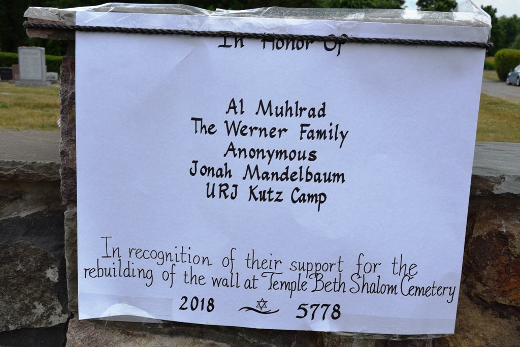 Many thanks to all who came to help Temple Beth Shalom re-dedicate their cemetery after the desecration 19 months ago, and of course to our loyal photographer, Gail Conklin. Please click on the thumbnail for a larger view.